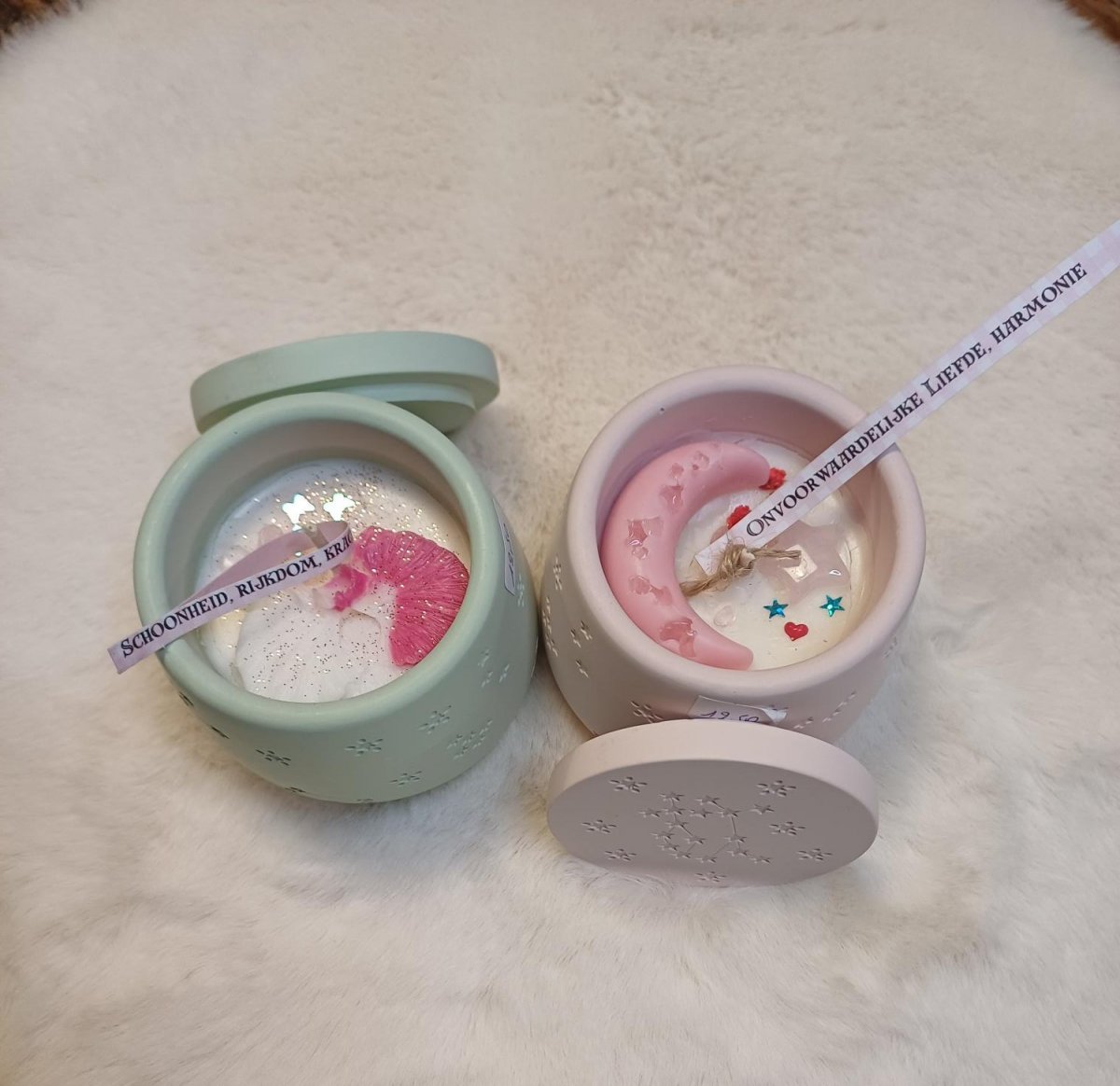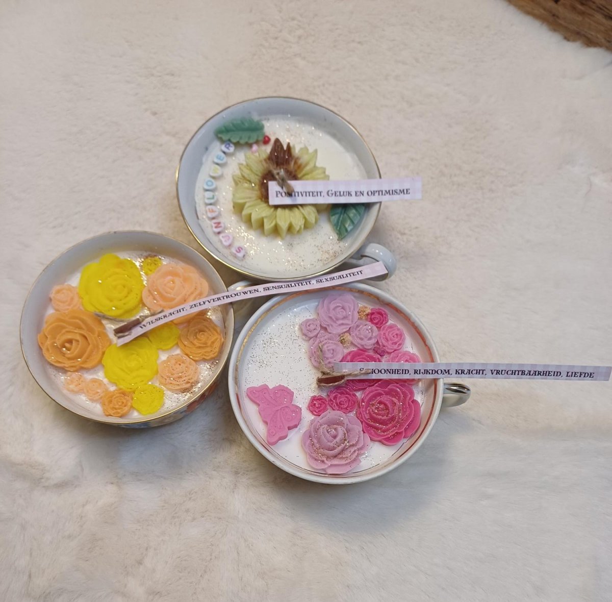 Elke kaars is ontworpen met een specifieke intentie, of het nu gaat om liefde, bescherming, overvloed of innerlijke rust.